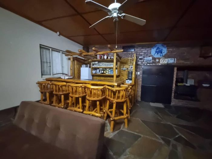 Entertainer's dream on a secure 1,682m² plot with expansive braai lounge and yellow-wood bar, 24-panel solar, self-contained 2-bed flat — main house 3 beds, 3 garages.